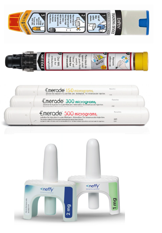 - Use of auto injector, including epi-pen, Jext and Emmerade devices.